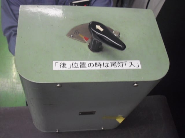 8000形 8155号車に使用していた方向切換器です。運転室の中に配置されており、運転室の進行方向に対して「前・後」または連結している状態で中間運転室であれば「中」位置を設定する機械です。