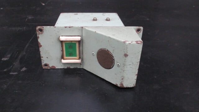 1000形用 1092号車で使用していた連絡用マイクです。両運転台で運転士と車掌間で通話できるマイクです。